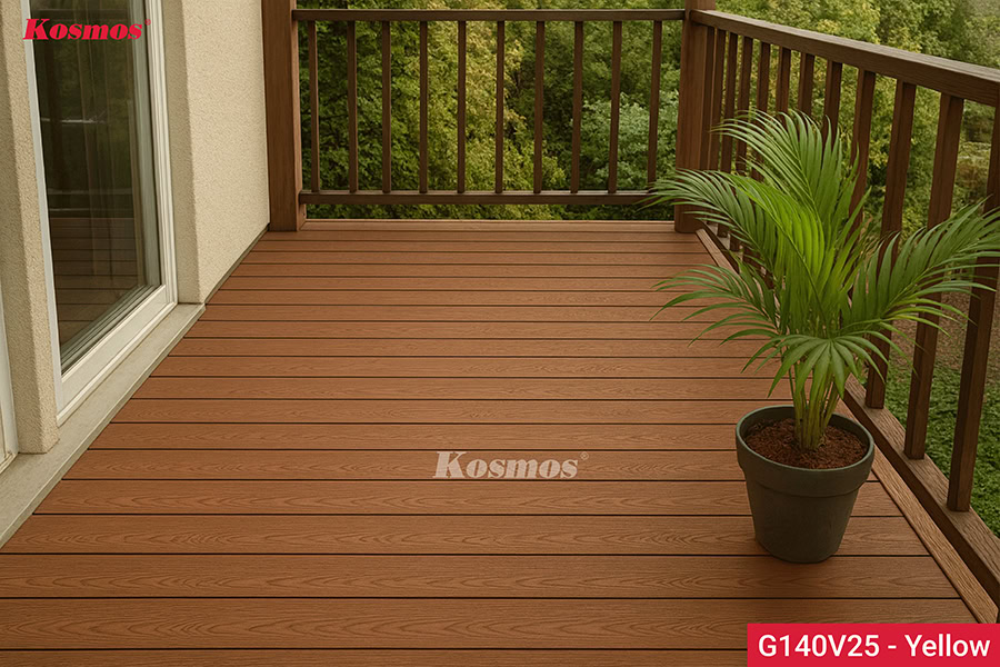 El piso de madera plástica para exteriores G140V25 con color amarillo se usa ampliamente en muchos espacios al aire libre, como pisos de piscinas, pisos de terrazas, jardines, pasillos al aire libre, etc., con la capacidad de resistir las termitas, limitar la pudrición y es fácil de limpiar y mantener.